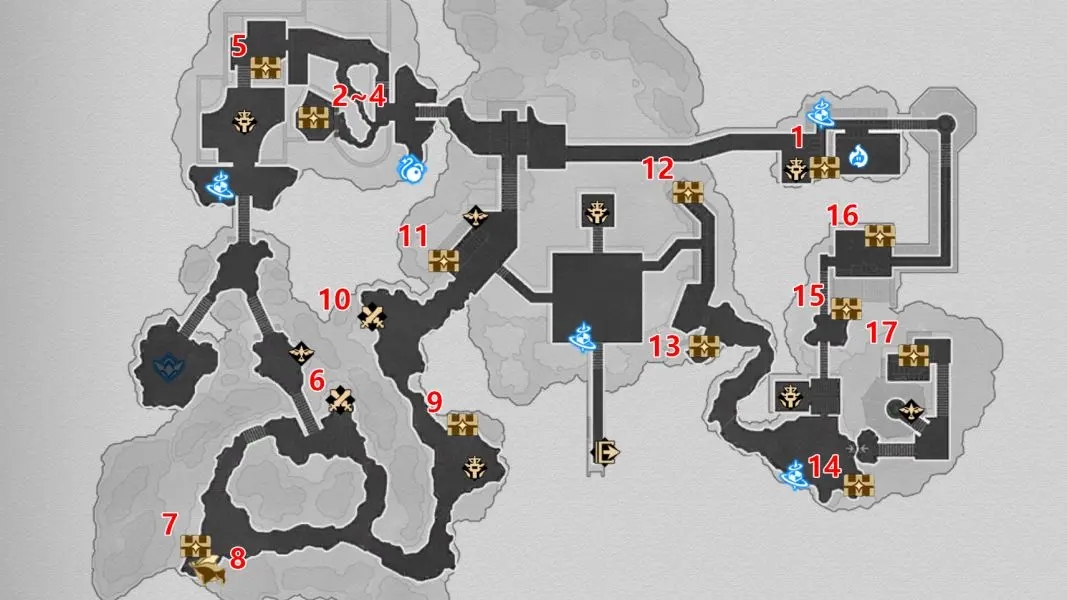 (1)大部分宝箱位置都标在地图上了,跟着箭头走基本没错。